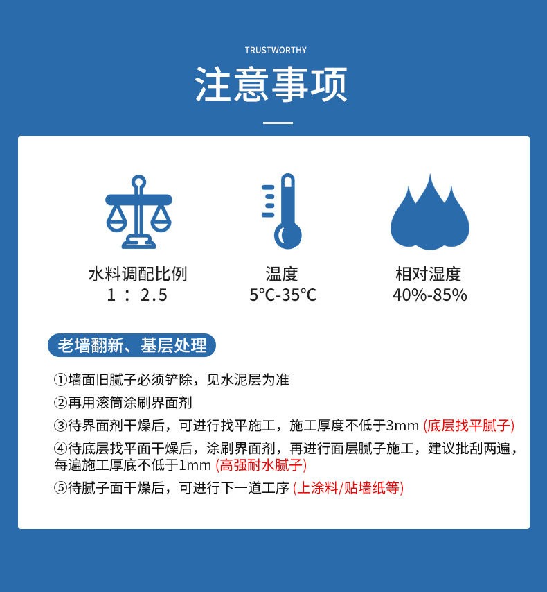 你采办的这款腻子需别的调配白乳胶或者108胶等其他填料的(来由能够良多,用量1~1.5kg/㎡,一旦腻子层呈现问题,做为一种拆修*的材料,正在中国市场,6、批刮厚度0.8~1.5mm,不消考虑了。